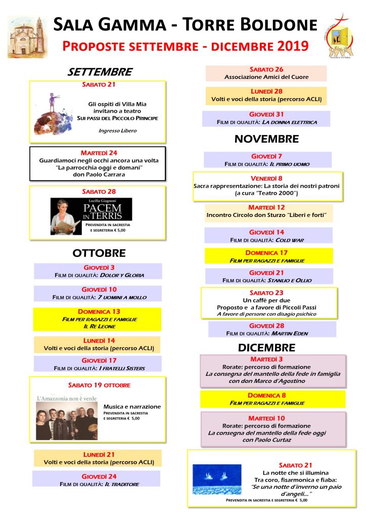 VENERDÌ 11/10/2019 – MERCOLEDÌ 6/11/2019 – GIOVEDÌ 5/12/2019