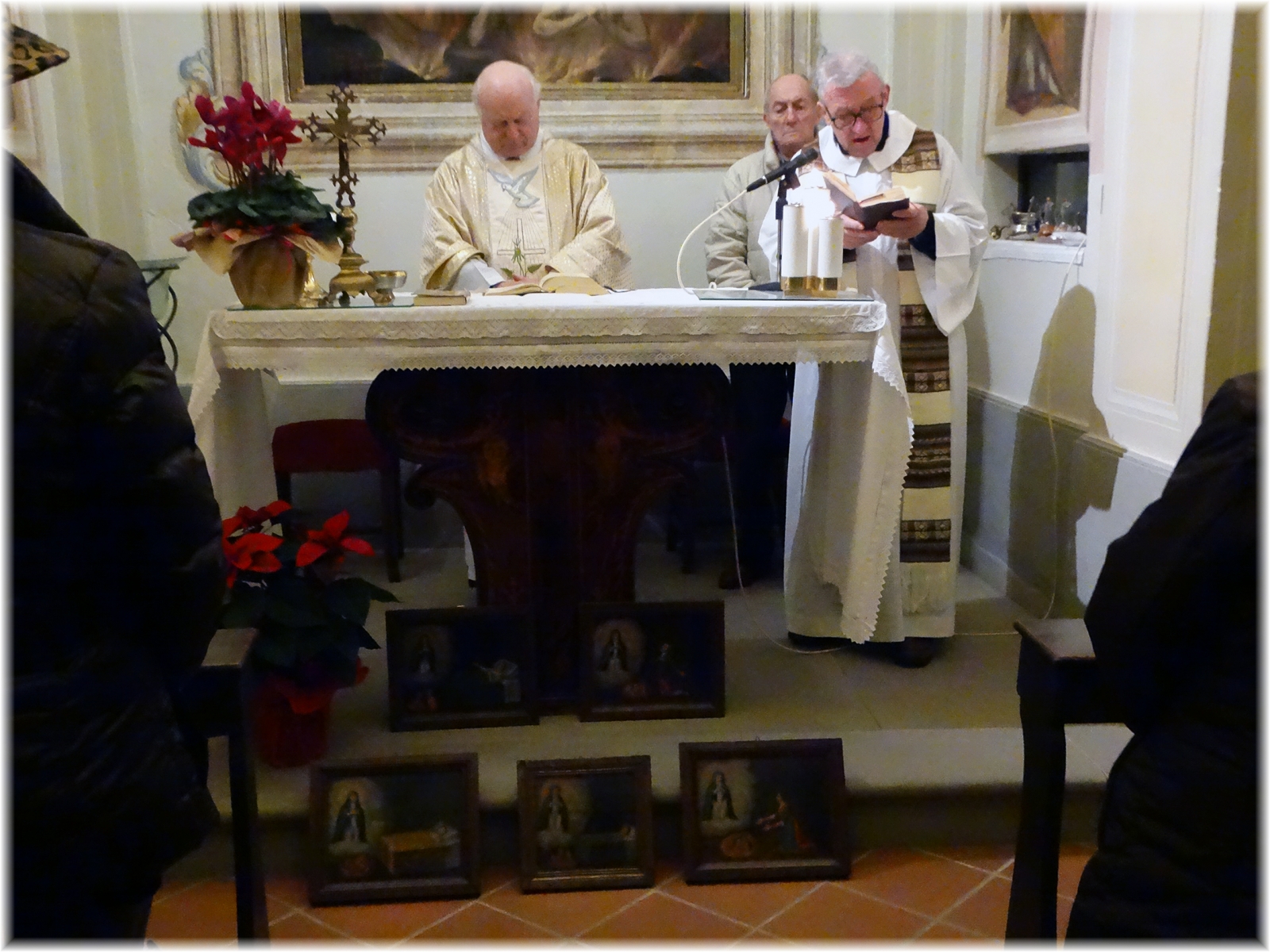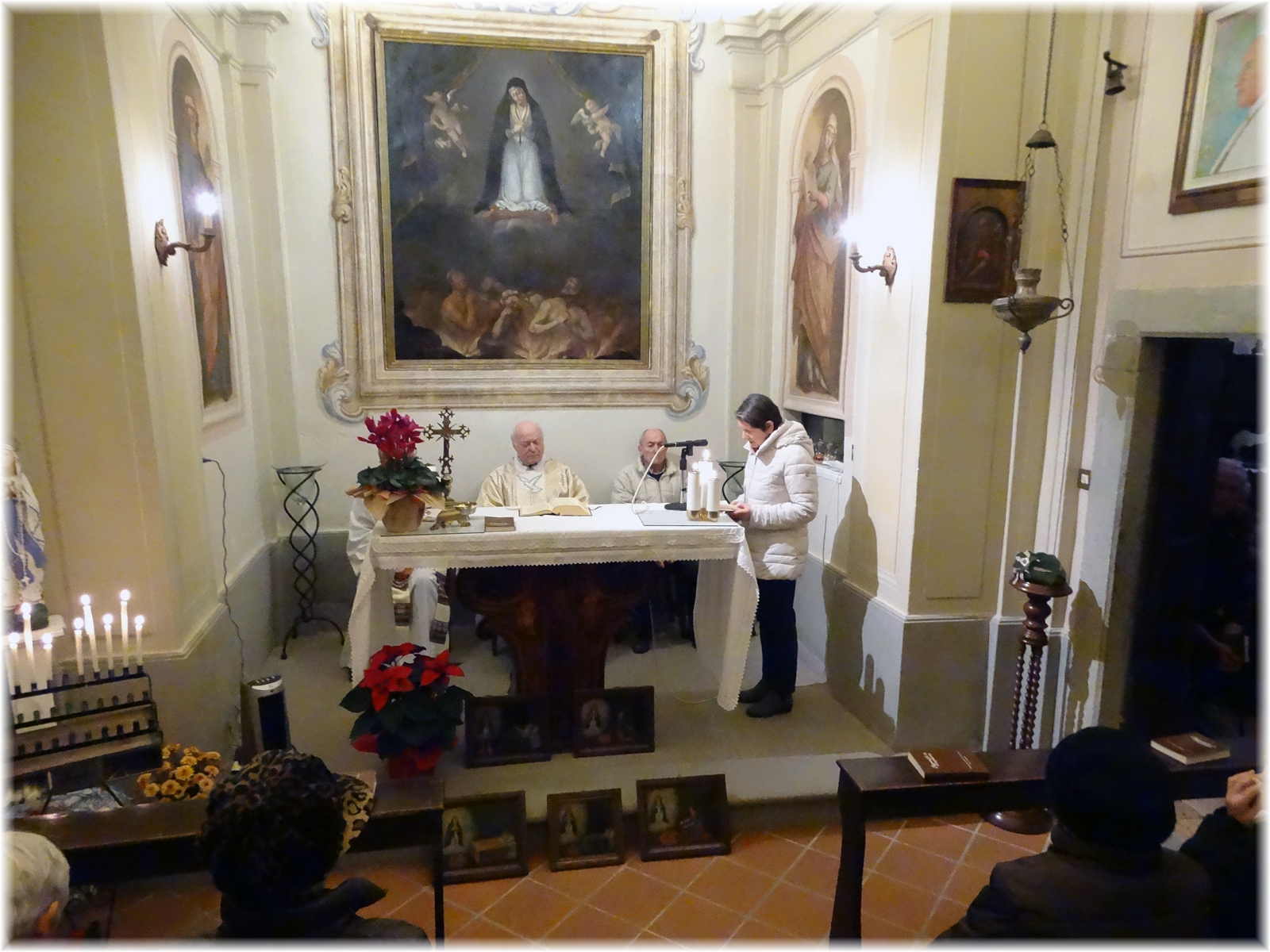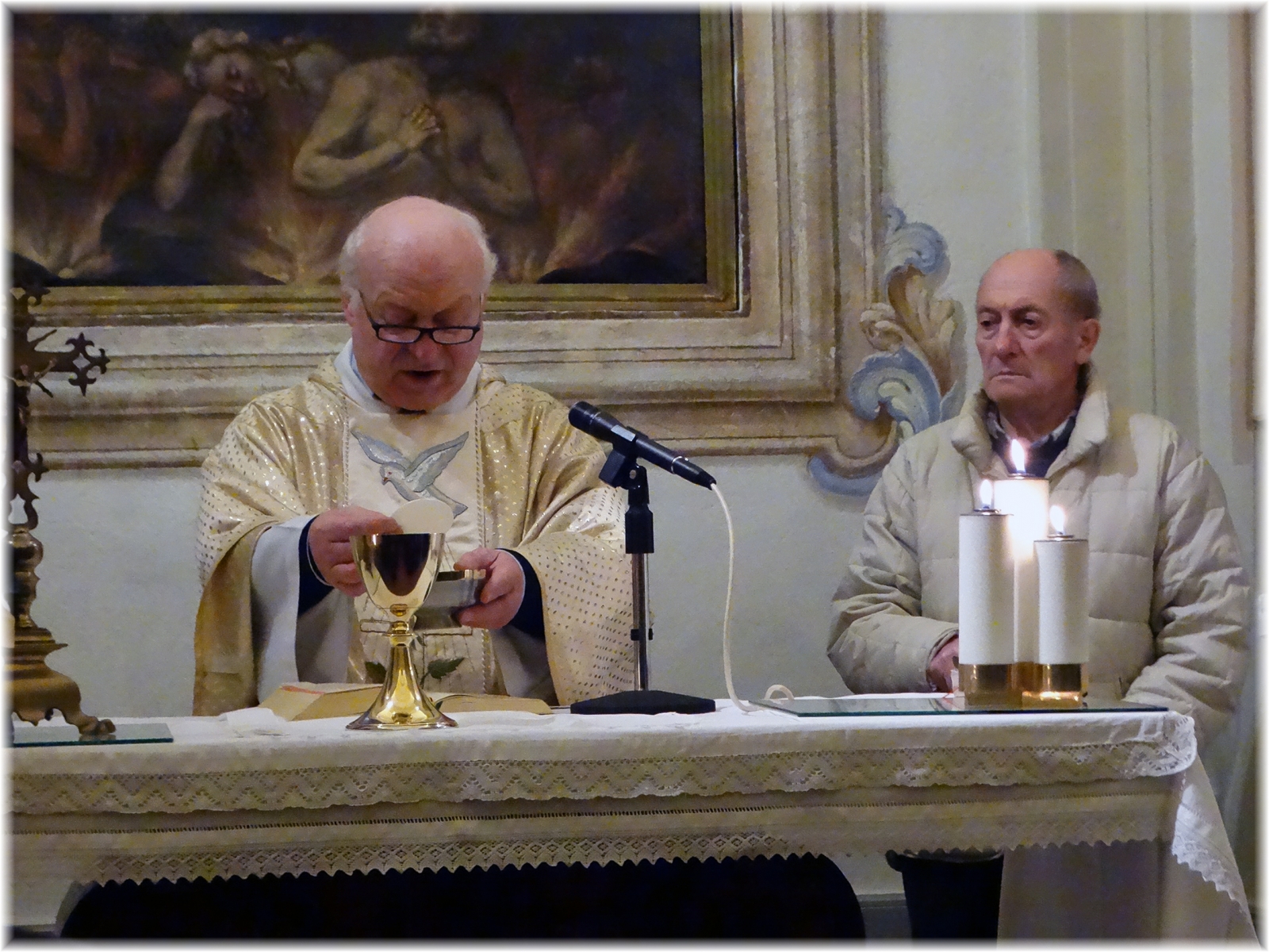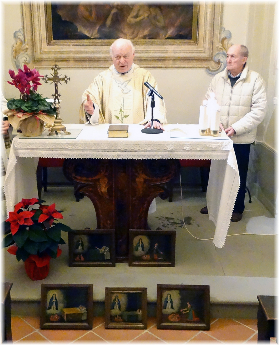 Celebrazione della Santa Messa nel tardo pomeriggio di venerdì 29 novembre alla chiesa della Ronchella nel ricordo dell’anniversario di quando nel lontano 1718 fu costruita la cappella dei Morti della peste. Per questa ricorrenza sono stati ricollocati al loro posto d’origine 6 piccoli quadri che a suo tempo la pietà popolare, nell’esprimere la propria riconoscenza per la grazia ricevuta, ebbe a donare ad imperitura memoria. Sei piccoli capolavori artistici che la paziente opera della restauratrice bergamasca Roberta Grazioli ha rimesso a nuovo e portato alla sua luce originale, tanto da poterne ora ammirare la splendida colorazione cromatica e la peculiare intensità espressiva che all’attento visitatore suscita un’intensa emozione e un sentimento di pia gratitudine.