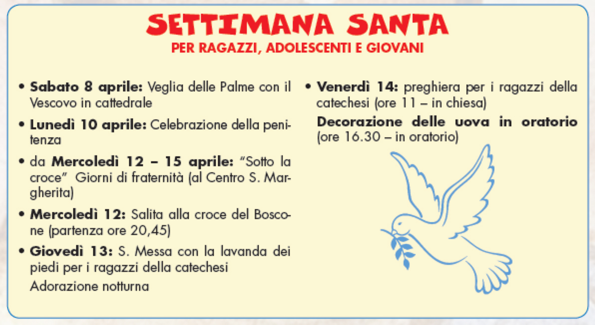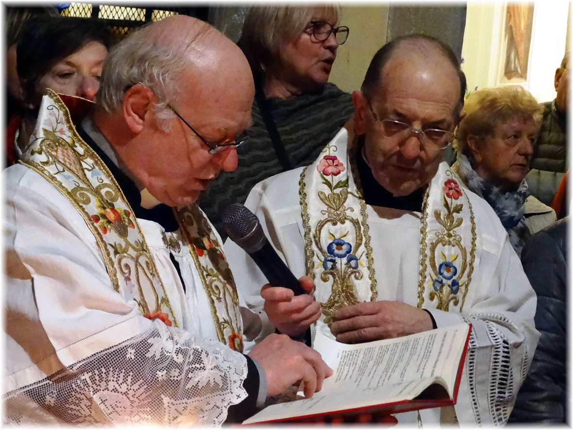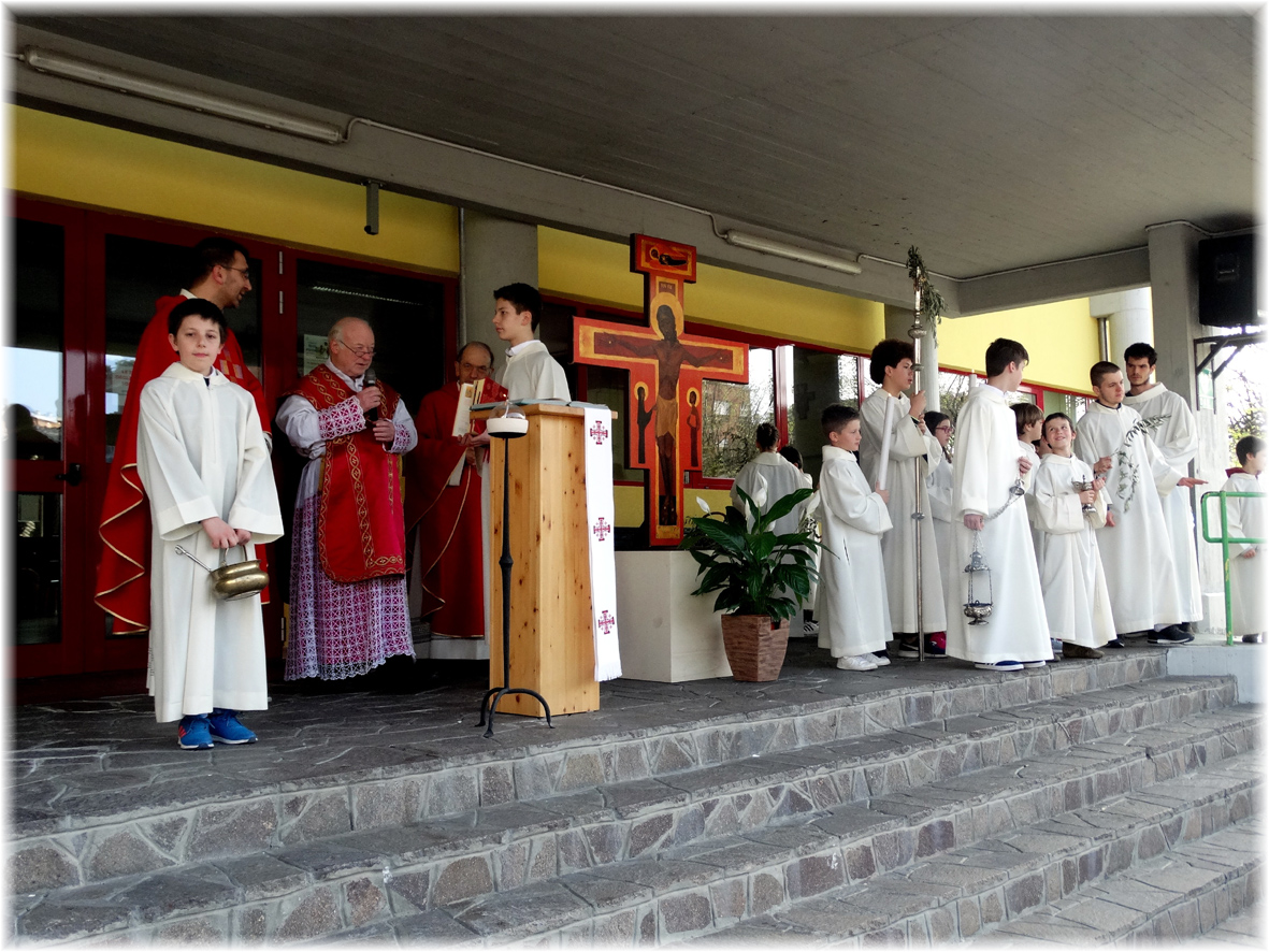 proposto la descrizione dettagliata degli avvenimenti della Passione del Signore, da Matteo cap. 26, declamato a tre voci dai nostri sacerdoti e ascoltato dall’assemblea con devota attenzione e intensa partecipazione. La celebrazione liturgica che ha visto la presenza anche di Don Giuseppe, concelebrante, è stata allietata dai canti del nostro coro parrocchiale con una numerosa partecipazione di fedeli e attorno all’altare un gran numero di bambini e di piccoli scout che hanno fatto da corona alla gioiosa e pur sempre significativa concelebrazione.