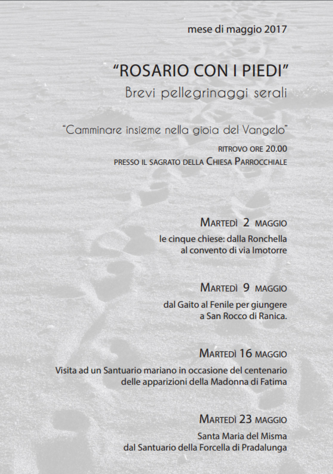 con una preghiera sommessa e accorata, nella quale abbiamo riposto ogni nostra vicissitudine ed ogni nostra fatica del vivere quotidiano. Il cammino è poi proseguito per via Monte Ortigara da dove, attraverso un percorso campestre, illuminato a giorno da fiaccole e lumini è stata raggiunta la chiesetta della Ronchella, detta anche “dei mortini”, dedicata alla Madonna del Suffragio.