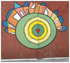 Svolti l’angolo e la barriera con il grande logo colorato del centro comunitario ti appare davanti.
