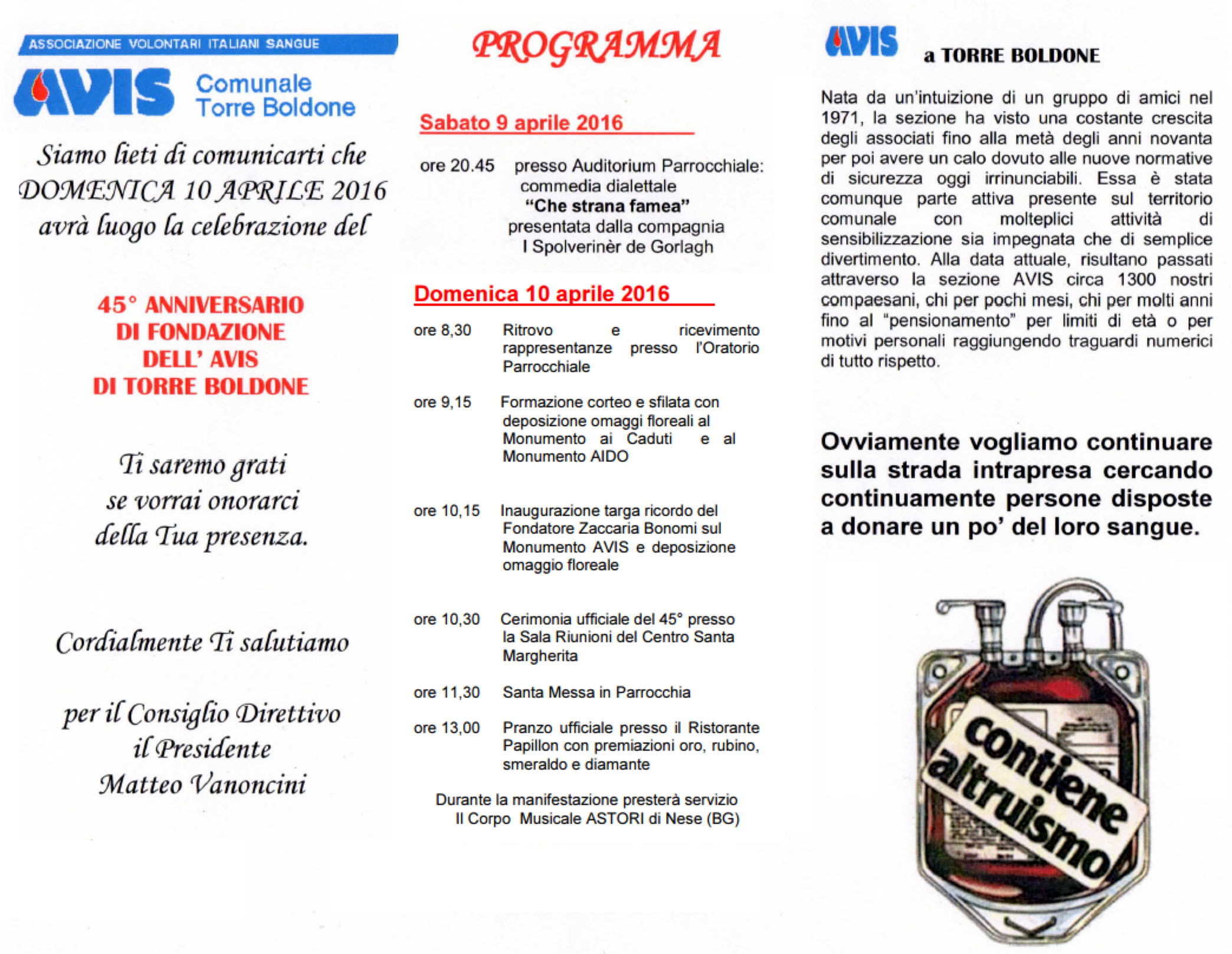 Un particolare ringraziamento al Gruppo “Amici della Ronchella” per la lodevole preparazione e organizzazione della festa, che ha reso possibile vivere queste giornate di intensa spiritualità con sereno e spontaneo spirito di amicizia. Un riconoscente grazie anche al gruppo Alpini del nostro paese che molto generosamente, con l’allestimento della tenda del Ristoro e con altri molteplici servizi, ha collaborato per la soddisfacente riuscita dei festeggiamenti. A tutti un “grazie sincero”.