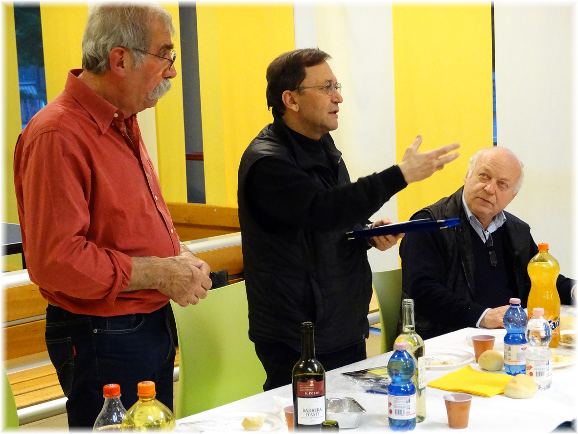 Defendi dell’Associazione “In strada” collegata con il Patronato San Vincenzo di Sorisole: Sig. Rodolfo Scala dell’Associazione “Carcere Territorio”. Tutti volontari educatori che operano all’interno e all’esterno dell’Istituto Penitenziario prodigandosi per un’opera assistenziale e rieducativa veramente encomiabile e fondamentale. Le esperienze di cui ci hanno resi partecipi nella loro attività quotidiana di assistenza, ci hanno testimoniato un mondo del quale non conoscevamo in profondità sofferenze e disagi dei nostri “fratelli in carcere”!