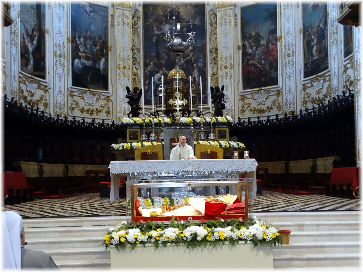 accogliendo la richiesta del nostro Vescovo mons. Francesco Beschi, che così ha commentato l’evento: “Ringraziamo Papa Francesco per questo gesto di amore paterno nei confronti della nostra Diocesi. E’ per noi una grande gioia e una grazia speciale. Pensare al santo Papa Giovanni XXIII che torna nella sua terra mi ha fatto ricordare quanto lui disse, pochi mesi dopo l’elezione a Pontefice, in un’udienza ad un gruppo di bergamaschi: “Vi esorto a progredire sempre nella bontà, nella virtù, nella generosità, affinché i Bergamaschi siano sempre degni di Bergamo”. La sua presenza interpella la nostra Chiesa e la nostra società…”. Molteplici sono state le motivazioni per le quali Sua Eccellenza il nostro Vescovo ha inoltrato a Papa Francesco la rispettosa richiesta di avere le spoglie del santo Papa Giovanni XXIII, rimasta tra noi dal 24 maggio al 10 giugno, attraverso un itinerario religioso mirato al ricordo edificante della sua spiritualità con invito ad imitarne poi le molteplici virtù. Papa Roncalli è