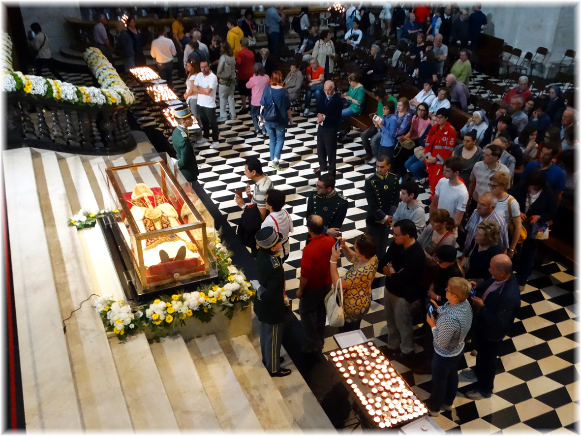 Baccanello; da qui dopo una preghiera incessante di una folla innumerevole di pellegrini, si è snodata una fiaccolata interminabile di fedeli che con canti, preghiere e invocazioni ha raggiunto il paese natale del Santo Papa, Sotto il Monte. Qui le reliquie di Papa Roncalli sono state collocate nella Cappella “Nostra Signora Regina della Pace”, per la venerazione dei fedeli, suscitando motivi di riflessione per una sincera revisione del proprio vivere quotidiano in conformità e sull’esempio del santo Papa Giovanni XXIII. A Sotto il Monte ogni giornata è stata caratterizzata dalla celebrazione eucaristica vespertina delle ore 20.30, connotata dal coinvolgimento di alcuni settori della vita ecclesiale e sociale. Nella sera di giovedì 31 maggio, con la presenza di una moltitudine di pellegrini, si è compiuta la processione diocesana del Corpus Domini, presieduta dal Vescovo Beschi; un coro di esultanza e di giubilo per le strade del piccolo paese natìo del santo Papa, una preghiera di lode a Gesù nell’Eucaristia, dove il Cristo è presenza vera, reale, sostanziale. Venerdì 1 giugno, il card. Giovanni Battista Re ha incontrato le associazioni laicali e sabato 2, il patriarca di Venezia, mons. Francesco Moraglia, successore di Roncalli, ha celebrato la Santa Messa per le famiglie. Domenica 3 giugno, nel 55° anniversario della morte di Papa Giovanni, l’Arcivescovo Metropolita di Milano, mons. Mario Delpini, ha celebrato la Santa Messa con tutti i vescovi della Lombardia e la sera di giovedì 7 giugno, un incontro tenuto dal card. Angelo Scola è stato rivolto al mondo politico e sociale, del lavoro e dei sindacati. Infine, sabato 9 giugno, il segretario di Stato vaticano, card. Pietro Parolin, ha presieduto la solenne celebrazione conclusiva, davanti a una folla immensa di devoti dai quali trapelava una evidente commozione mista ad una grande gioia, per un incontro che rimarrà stampato nei cuori di quanti hanno avuto l’opportunità di incontrare le reliquie del Santo Papa bergamasco. Per la conclusione della “peregrinatio” dell’urna, è giunto a Bergamo Sua Eminenza il Cardinale Angelo Comastri, Arciprete della Basilica di San Pietro e Vicario Generale del Santo Padre per la Città del Vaticano. Papa Francesco ha voluto agli onori degli altari, dichiarando Santo in “de plenitudine potestatis” (in forza della sua autorità) Papa Giovanni XXIII, il 27 aprile 2014; una canonizzazione “pro gratia” perché «Papa Roncalli ha aperto una nuova stagione per la Chiesa, a tutto campo, possiamo considerarlo uno spartiacque del Novecento. Nessuno si aspettava da un pontefice così anziano quello che ha fatto. Invece, ha segnato profondamente il cammino della Chiesa del presente e del futuro. Possiamo considerarlo una figura profetica, che oggi appare attuale più che mai. Bergoglio ha accolto con favore e fatto proprie le motivazioni presentate dalla Congregazione delle cause dei santi su istanza della postulazione della causa di Giovanni XXIII». In questa supplica, riportata nella «Positio super canonizatione», veniva scritto: «La postulazione chiede umilmente e fiduciosamente a Vostra Santità la canonizzazione di questo Sommo Pontefice, che con la sua vita e il suo esempio ha segnato, in modo indelebile, la storia della Chiesa». Giovanni XXIII fu il Papa del Concilio: l’11 ottobre del 1962 cominciò a Roma il Concilio Vaticano II, una riunione di tutti i vescovi del mondo in cui vennero discussi i rapporti tra la Chiesa e la società moderna. Il Concilio durò, in quattro successive sessioni, fino al 1965, e fu il più grande impegno compiuto dalla Chiesa cattolica di comprendere i profondi cambiamenti dei tempi. “Passa sulle nostre teste una grande ora di grazia, che soavemente ci conferma come la seminagione di santità dell’antica tradizione cristiana, rinnovata da San Carlo Borromeo, da San Gregorio Barbarigo e da zelanti e ardenti presuli e sacerdoti, continua a dare in letizia frutti copiosi”. Così ebbe a dire Papa Giovanni XXIII nell’omelia per la beatificazione di Don Luigi Maria Palazzolo nel marzo 1963. Quel giorno il suo pensiero si estese, con speciale affetto, a tutta la nostra diocesi, con tutte le sue parrocchie e con lo sguardo del cuore, rivide le contrade del piano e dei monti, da lui percorse da un capo all’altro, nella giovinezza sacerdotale e poi nei ritorni annuali, fino al 1958. Ed ora la sua amata diocesi è qui a ripetere quelle medesime parole, perché con l’arrivo in terra bergamasca dell’urna del nostro conterraneo santo Papa Giovanni XXIII, anche noi abbiamo vissuto “una grande ora di grazia, venuta a confermare come la seminagione disantità continua a dare in letizia frutti copiosi”… ora che anche lui fa parte della numerosa schiera dei Santi Bergamaschi. A conclusione dell’omelia per il Beato Palazzolo, aggiunse: “All’orecchio par di risentire in questo sereno vespero, le voci possenti di mille e mille campane”. In queste giornate di tripudio e di festa, anche noi abbiamo gioito e ascoltato al suo passaggio, il suono di mille e mille campane. Lode al Signore!