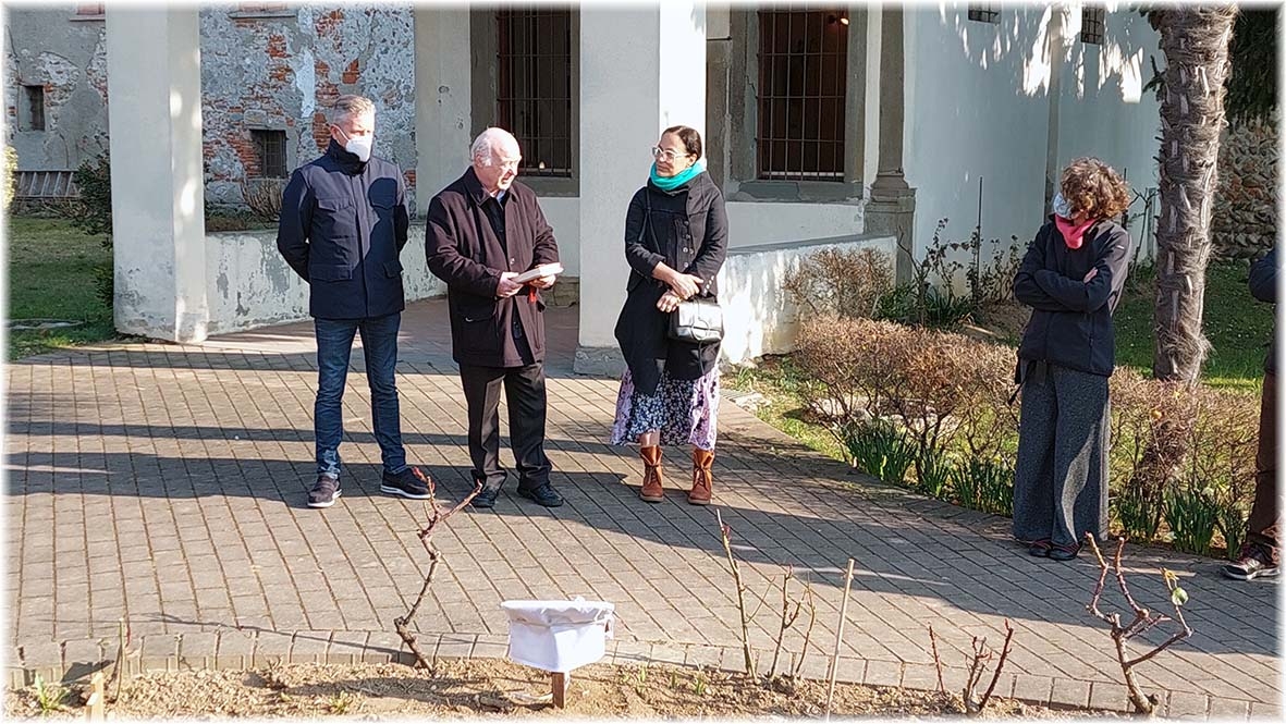 Domenica 6 marzo 2022 il Parroco don Leone ha benedetto la targa posta nel giardino in memoria di Paola Mostosi, alla presenza di un nutrito gruppo di parrocchiani, parenti e amici, ricordando insieme a Cristina Mostosi che la bellezza contribuirà a sconfiggere il male del mondo, e che educare i piccoli al rispetto della bellezza altrui sarà la base per lasciare ai posteri un mondo migliore.