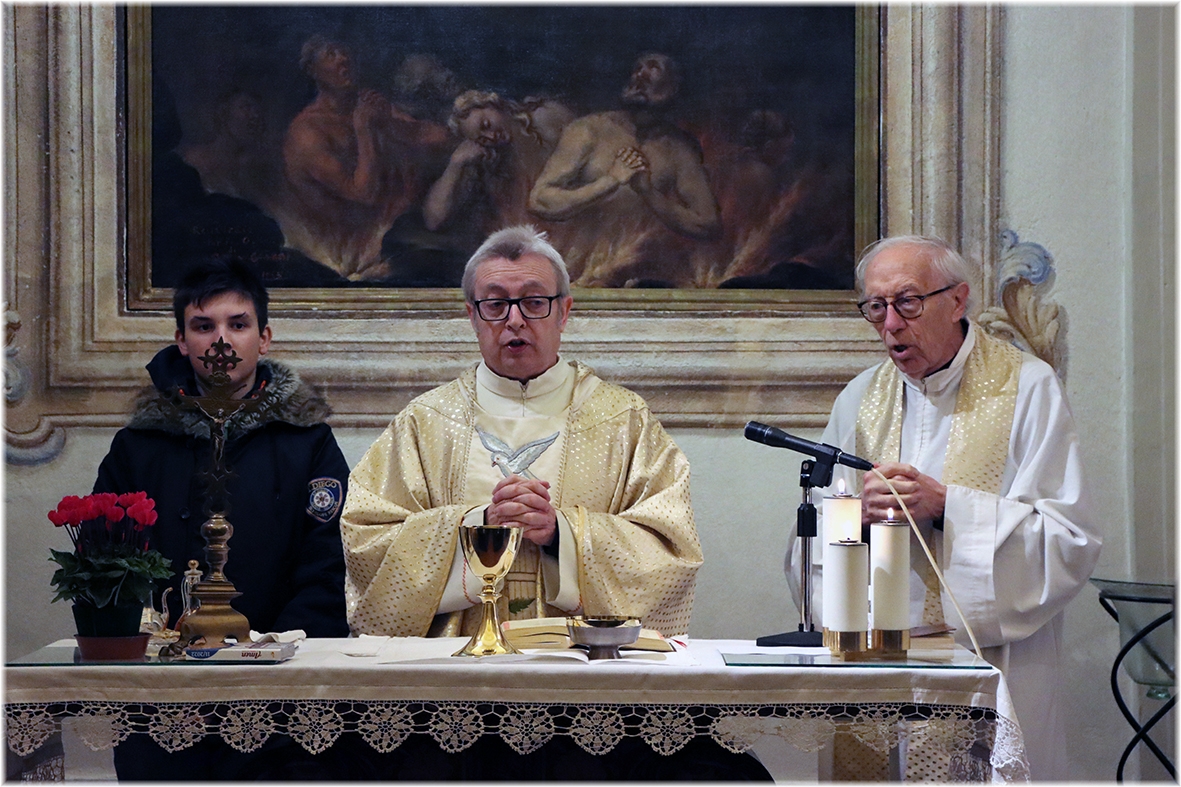 Alle 16.30 il parroco don Alessandro ha celebrato la Santa Messa, con don Elvio e molte persone che si sono ritrovate in questo luogo ricco di storia e religiosità. Al termine, sotto il portico della chiesa, gli amici della Ronchella e il gruppo degli Alpini hanno organizzato un piacevole merenda, a base di ottime torte, tè caldo e vin brulè, creando una bella e particolare atmosfera conviviale. Don Alessandro ha espresso la sua gratitudine a chi con dedizione cura la chiesa e mantiene vive queste tradizioni.