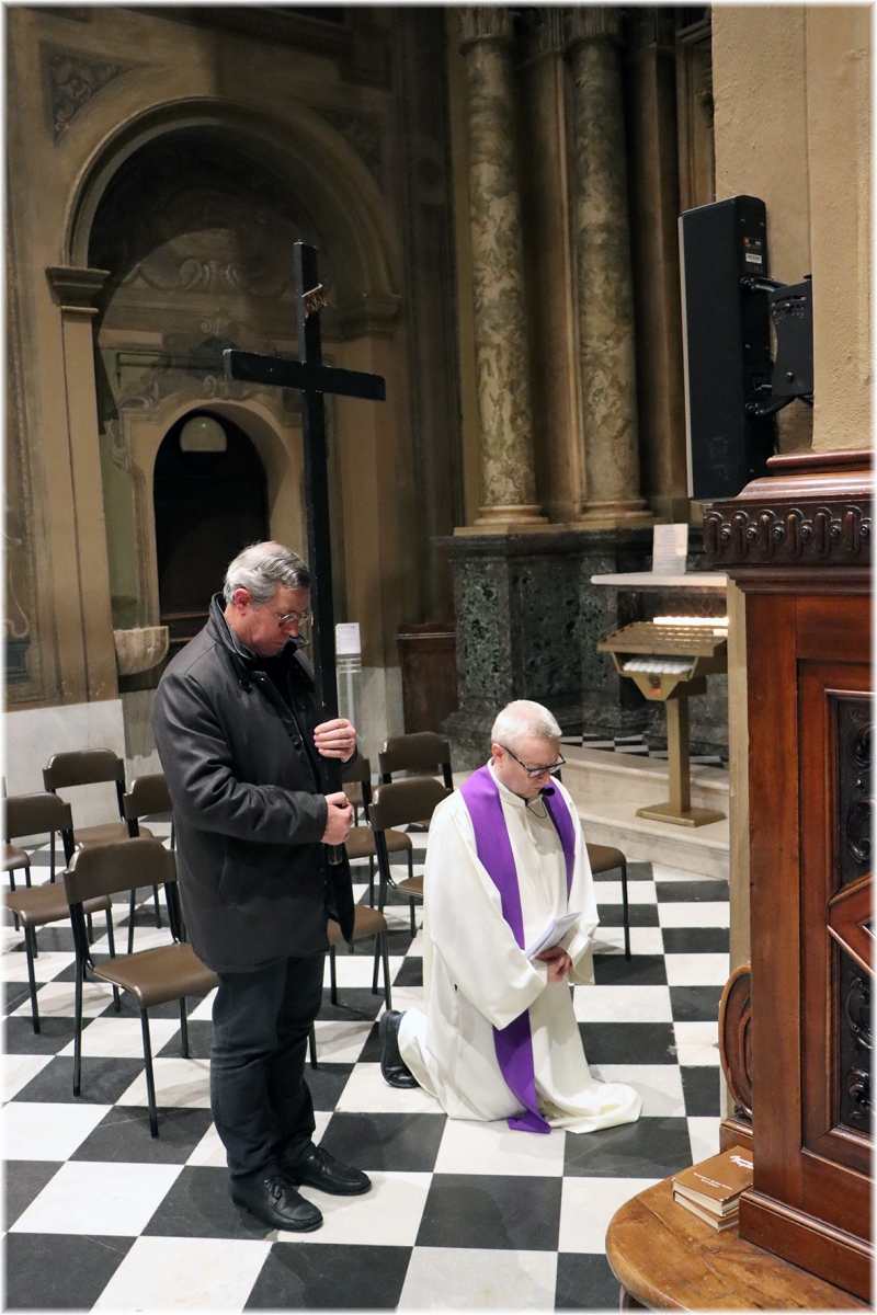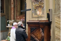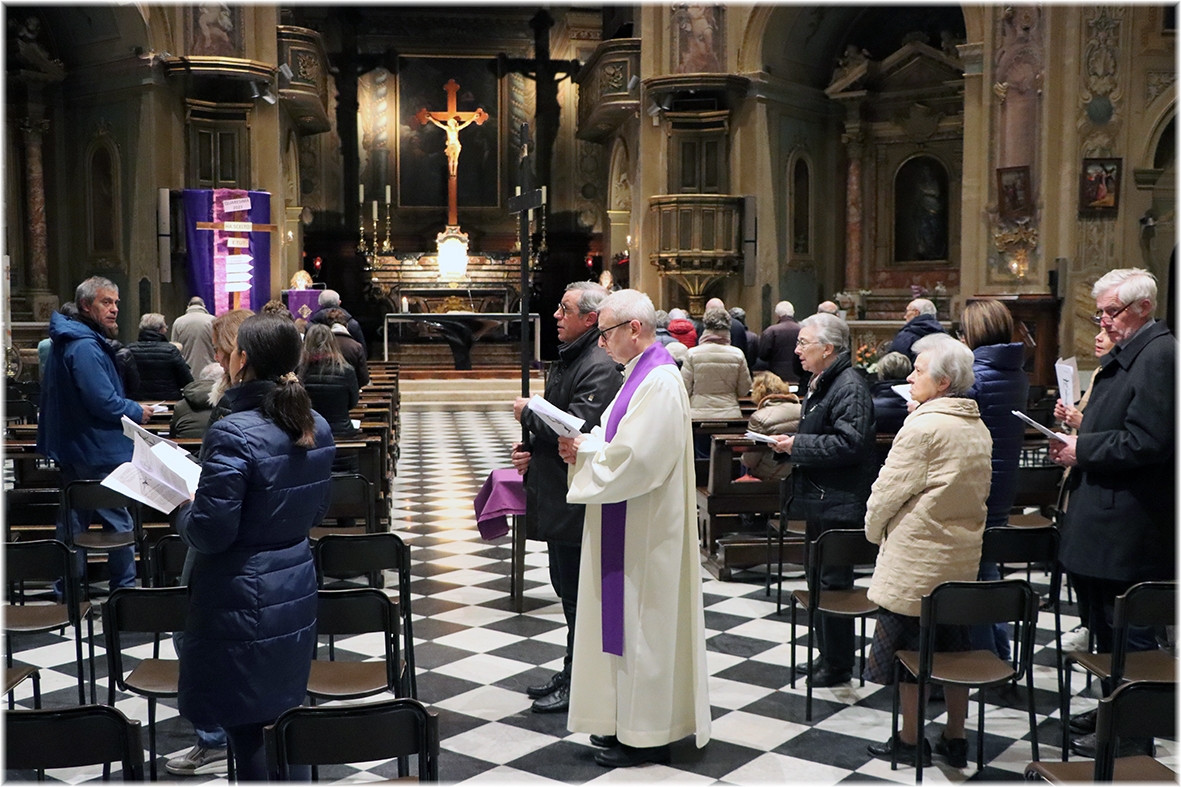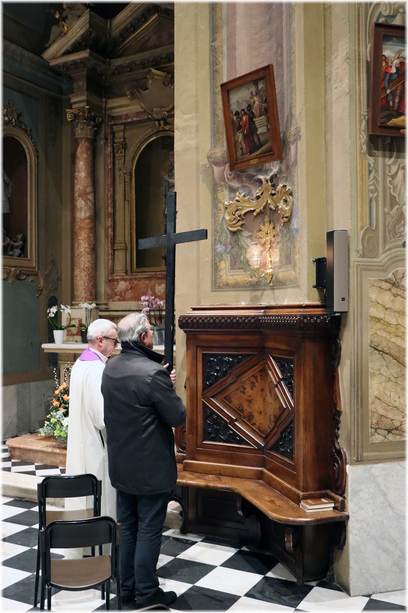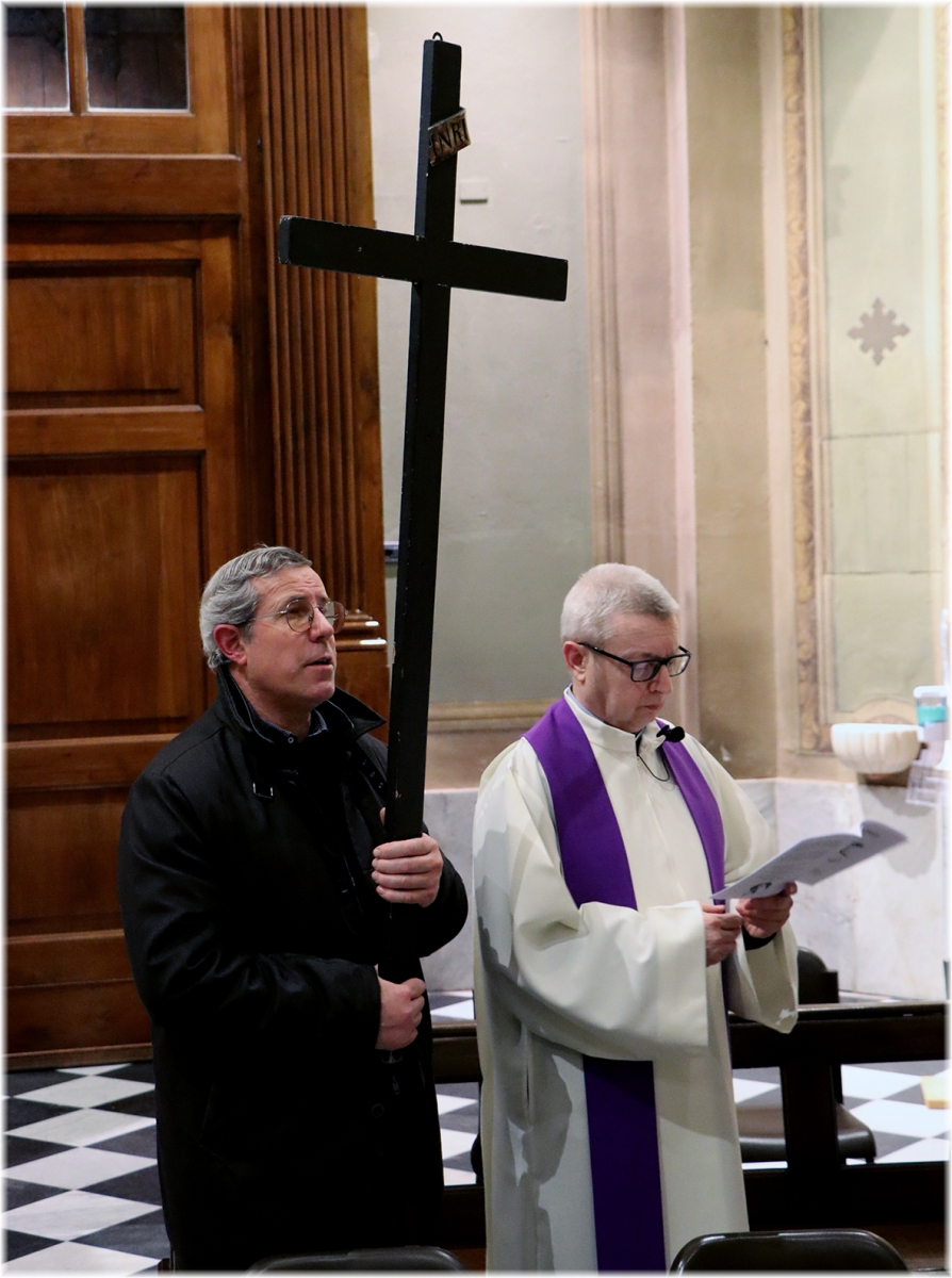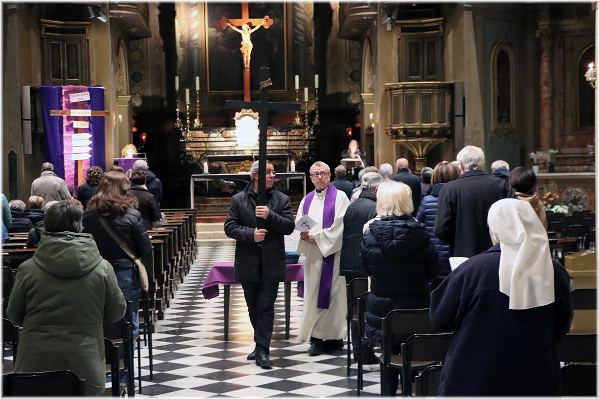 Accompagnati da alcune letture, abbiamo percorso le 14 stazioni, pregando e cantando, soffermandoci con la croce davanti ai quadri posti alle pareti della chiesa. Al termine, don Alessandro ha pregato in particolare per gli ammalati, la pace nel mondo ed ha invitato i fedeli presenti ad un momento di preghiera personale, dove esprimere e raccogliere le proprie intenzioni.