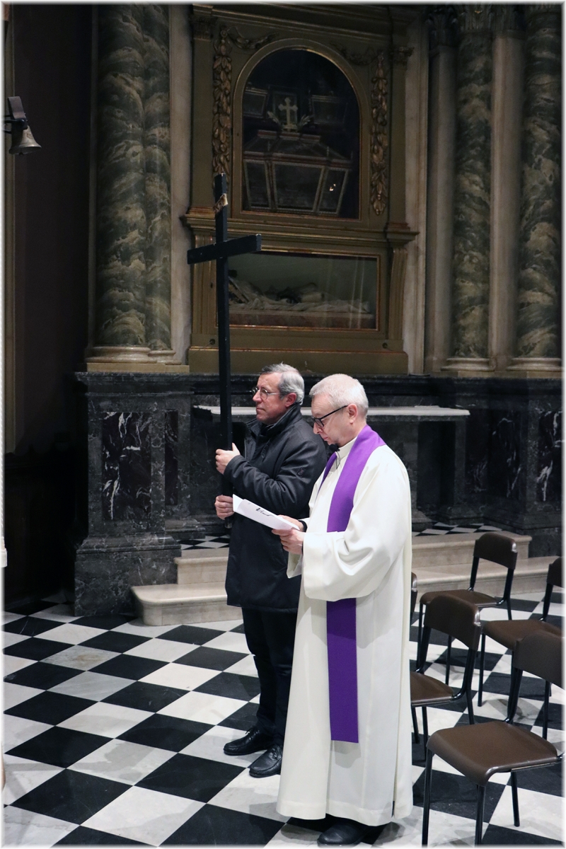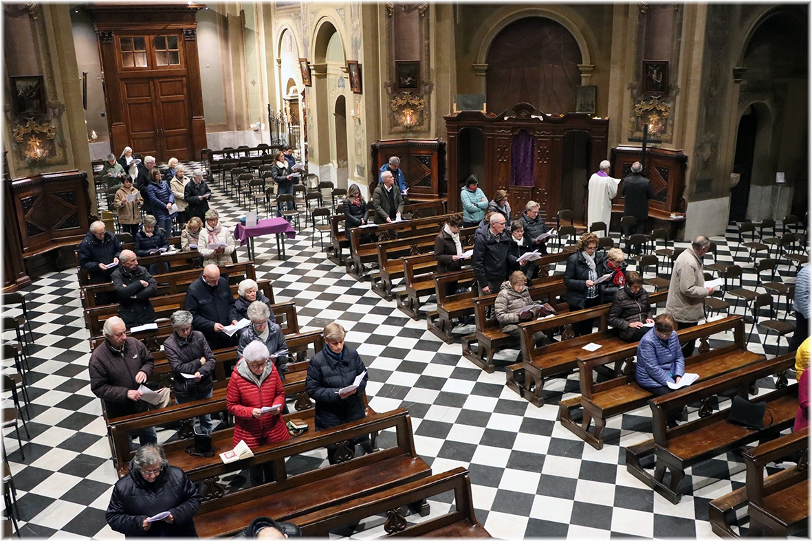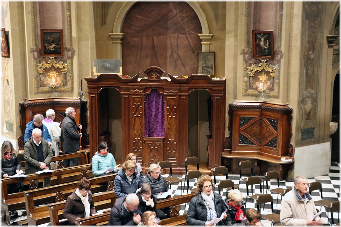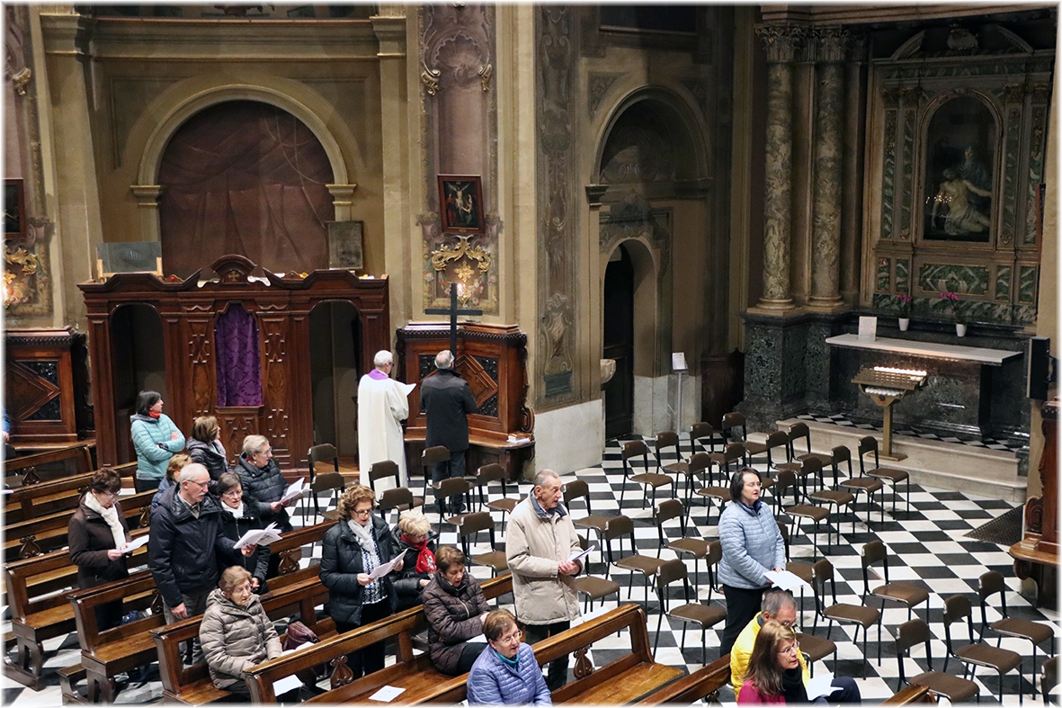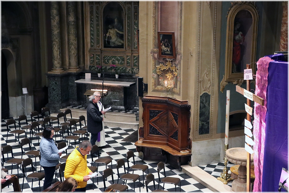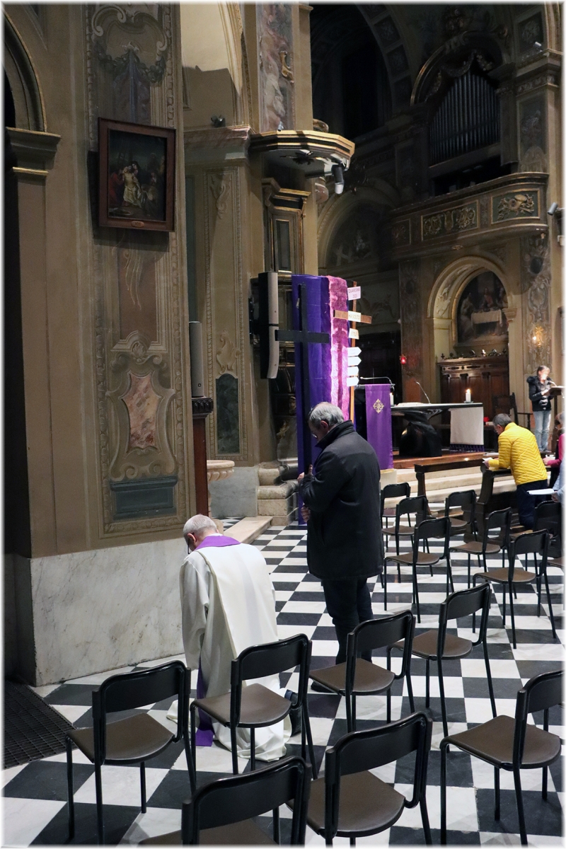 Accompagnati da alcune letture, abbiamo percorso le 14 stazioni, pregando e cantando, soffermandoci con la croce davanti ai quadri posti alle pareti della chiesa. Al termine, don Alessandro ha pregato in particolare per gli ammalati, la pace nel mondo ed ha invitato i fedeli presenti ad un momento di preghiera personale, dove esprimere e raccogliere le proprie intenzioni.