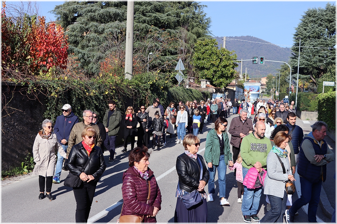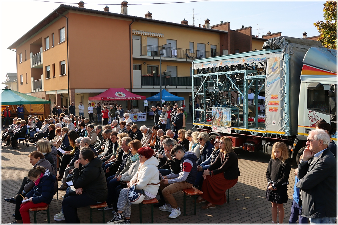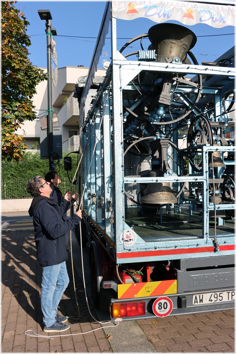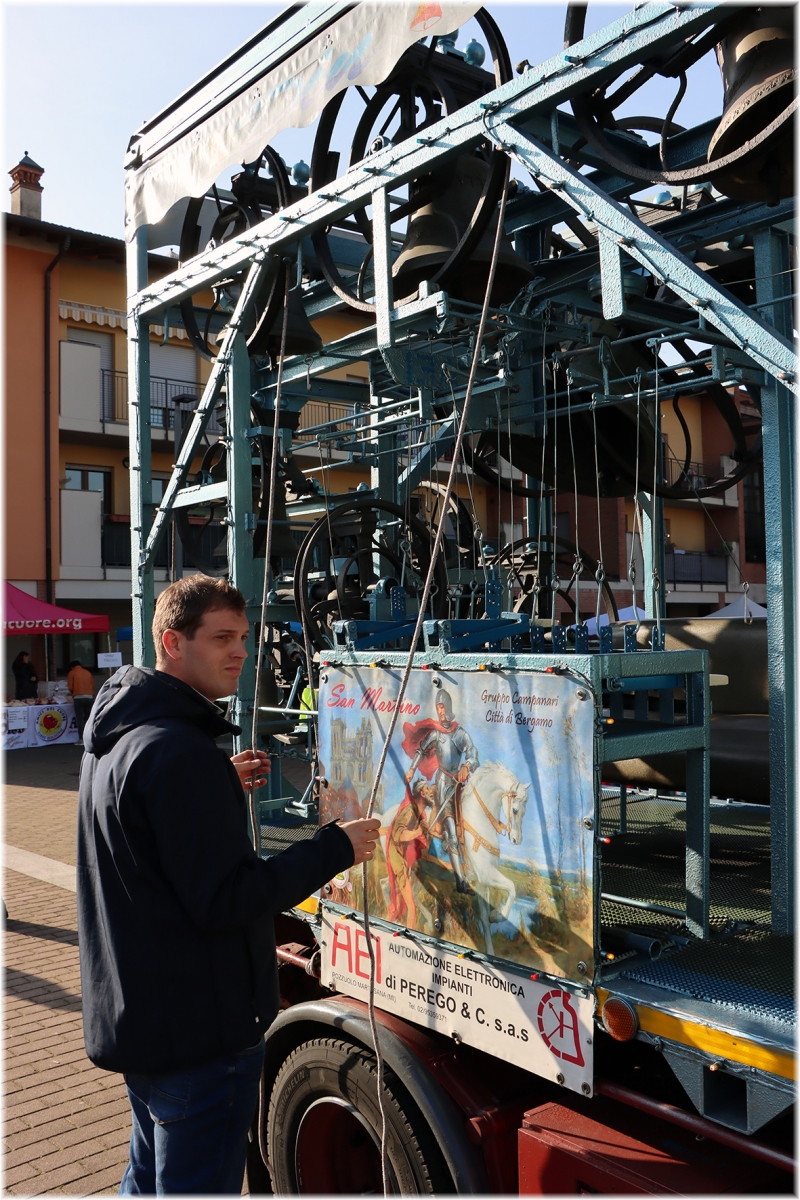 Durante il percorso nelle vie del quartiere, abbiamo pregato il Santo Rosario, alternando il suono delle campane del gruppo “Campanari di Bergamo”, presenti con il loro camion.