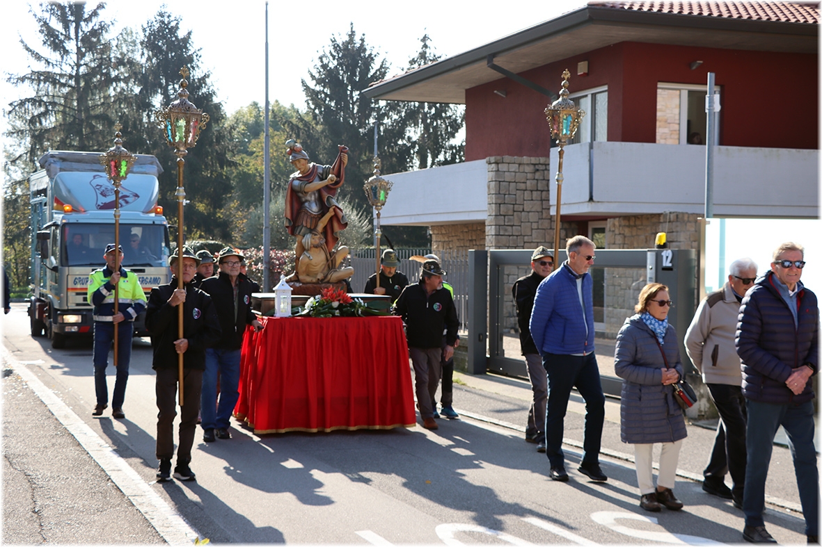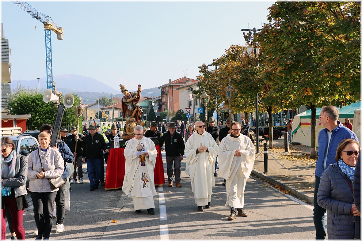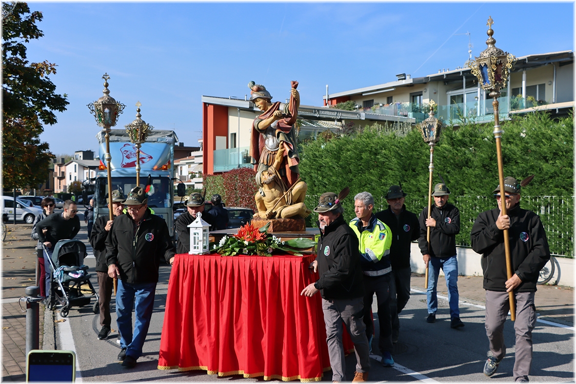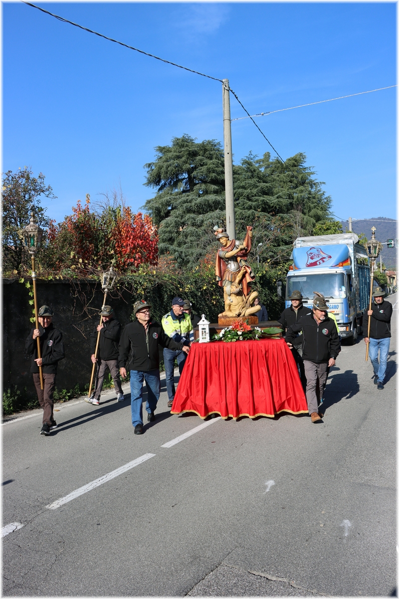 Al termine la processione con la statua di San Martino, accompagnata dagli Alpini e dai volontari della Protezione Civile ed Antincendio Boschivo.