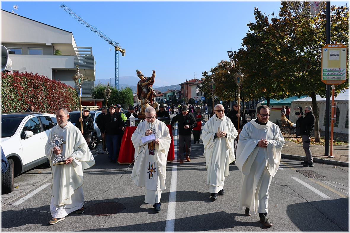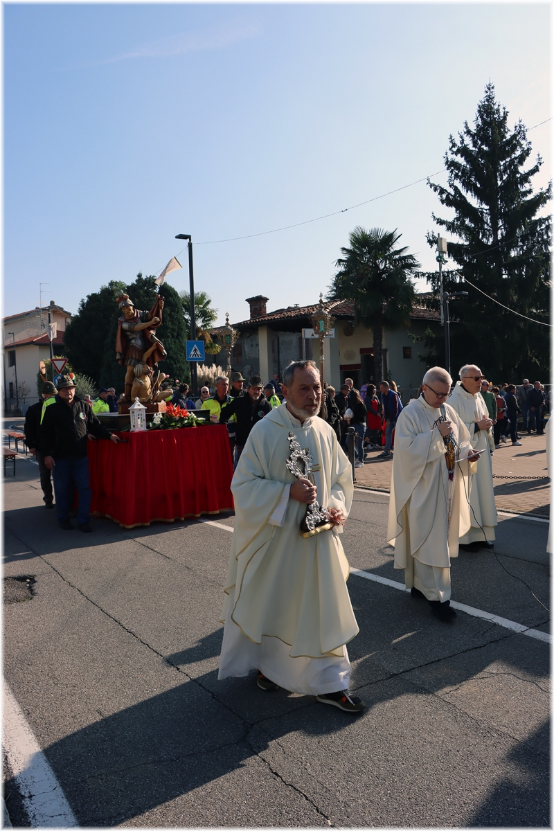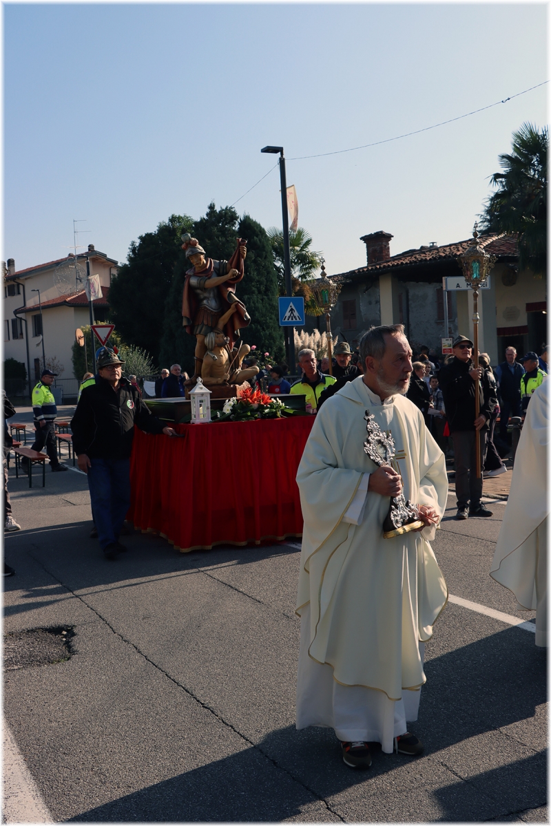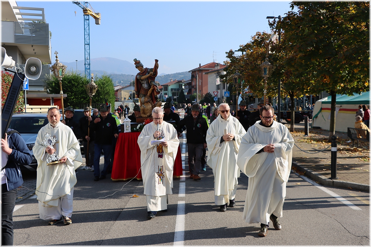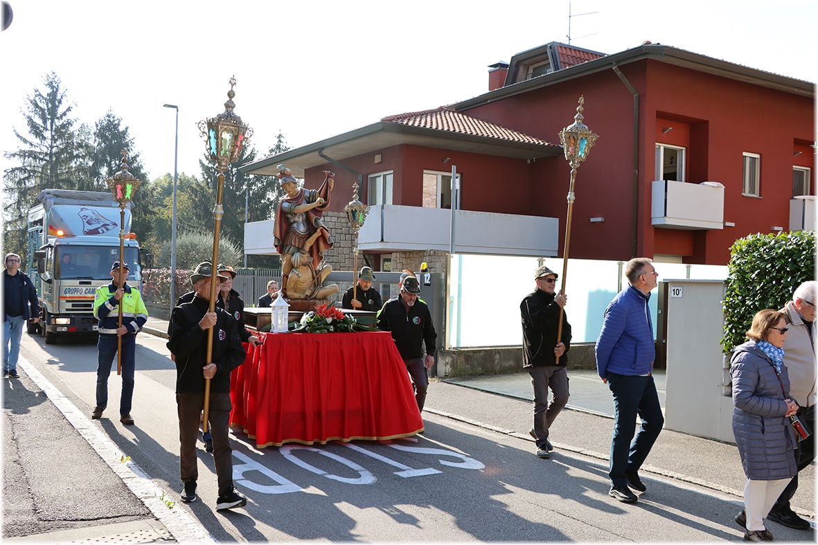 Al termine la processione con la statua di San Martino, accompagnata dagli Alpini e dai volontari della Protezione Civile ed Antincendio Boschivo.