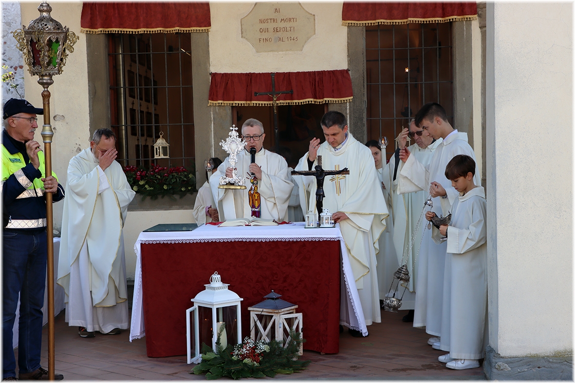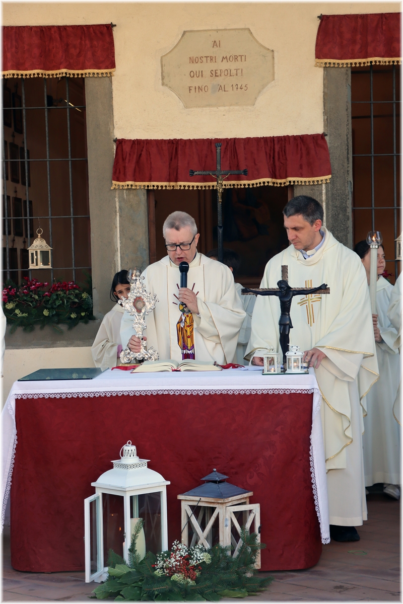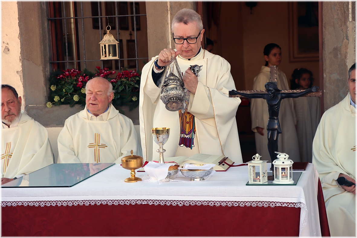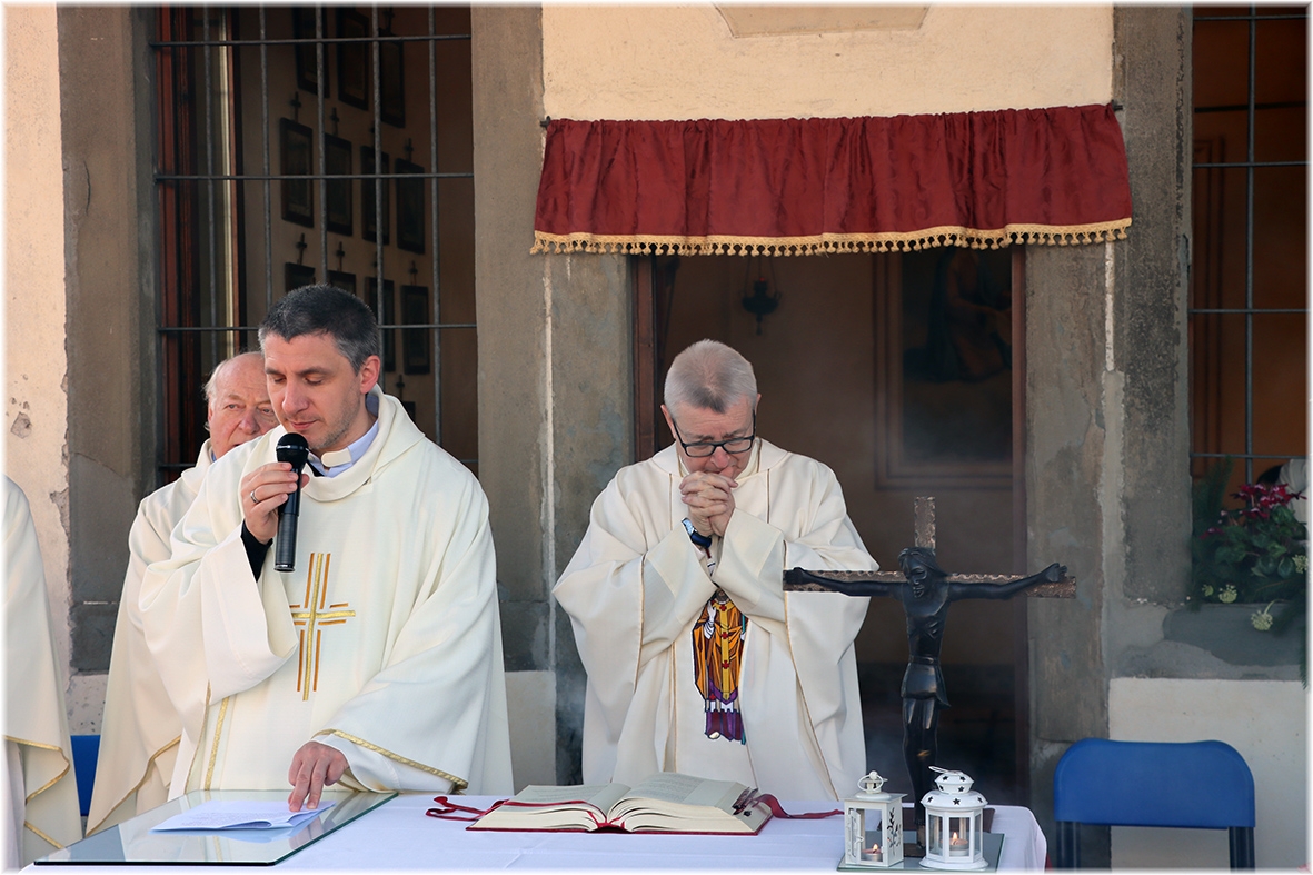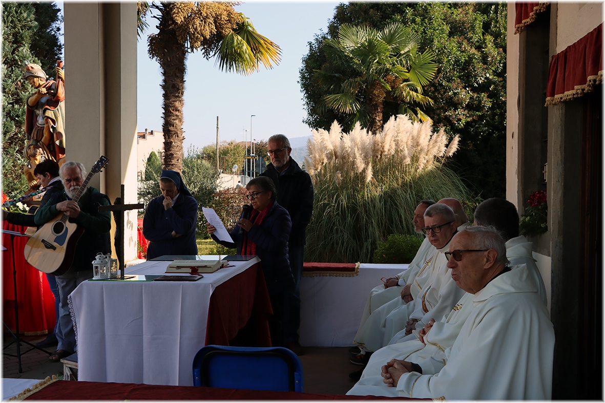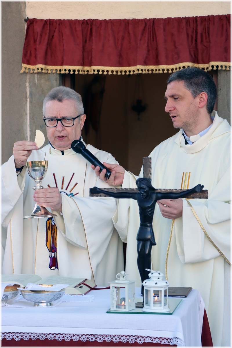 La bella e luminosa giornata ha riunito molti fedeli che in questo luogo ben preparato, addobbato ed allestito ha partecipato alla celebrazione, accompagnati dal coro dei ragazzi, dal suono delle chitarre e da quello delle campane.