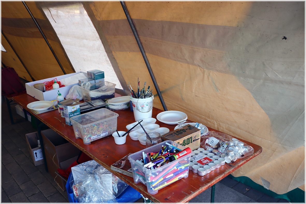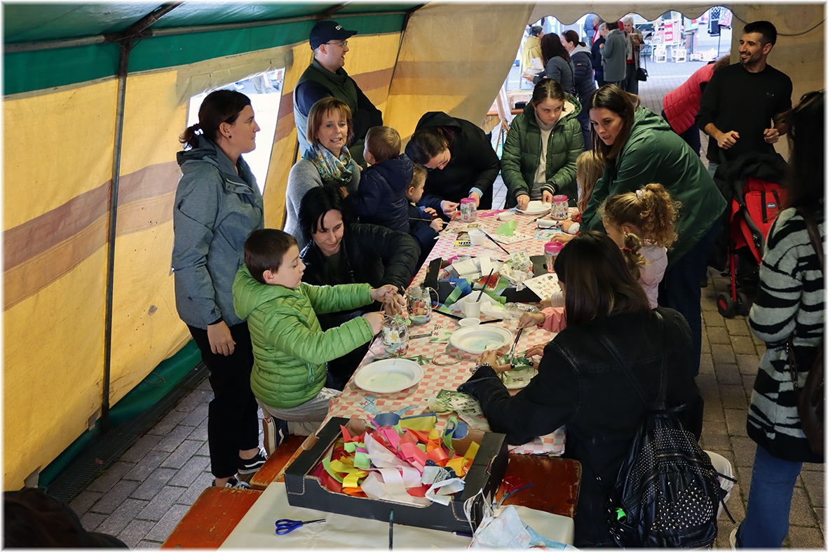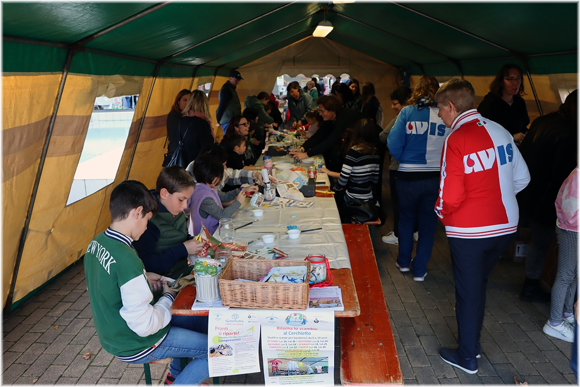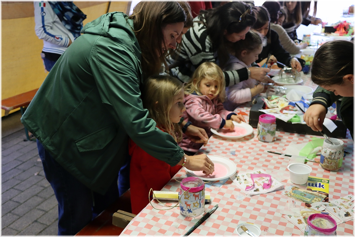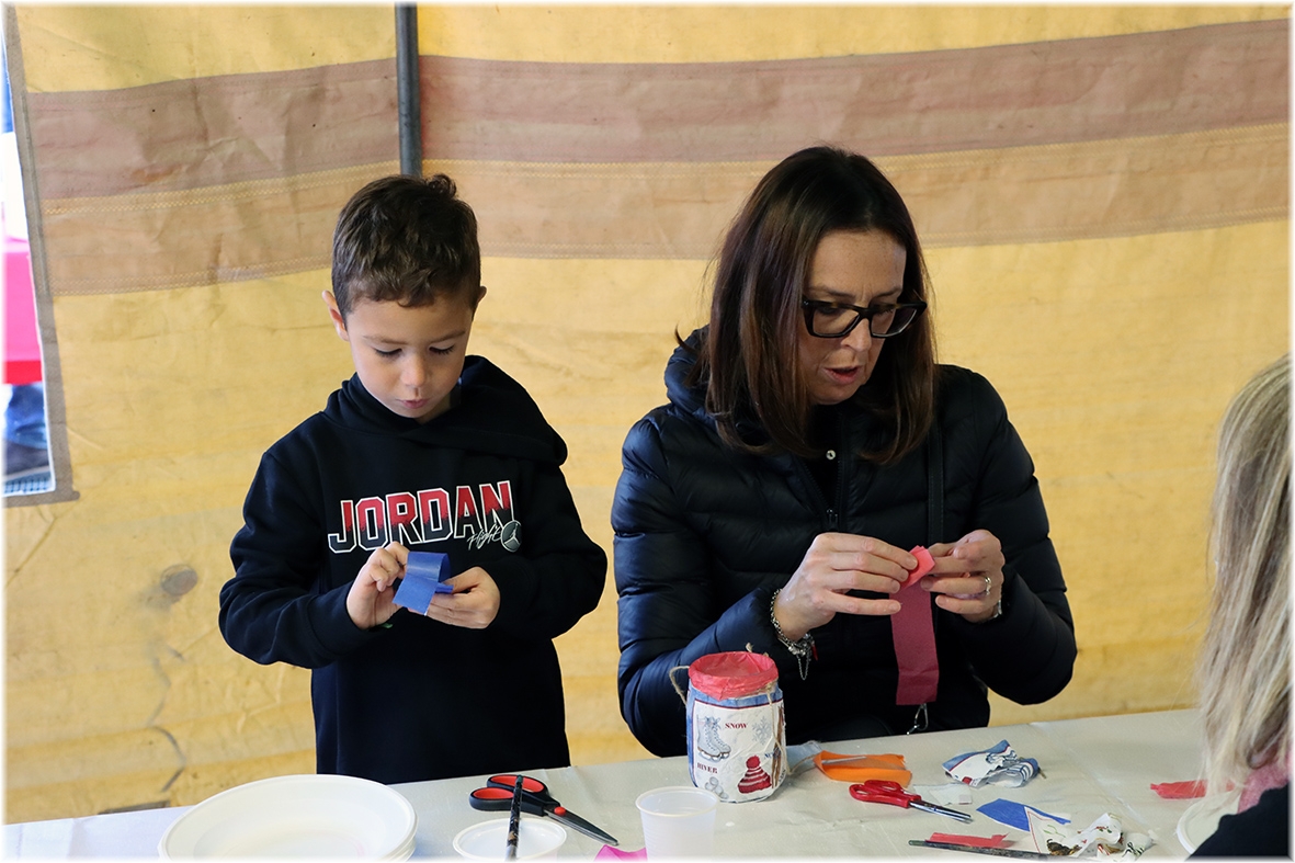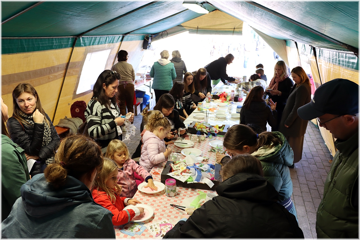Sotto il tendone il “Laboratorio della Lanterna di San Martino” dove i più piccoli, aiutati da genitori ed animatori hanno realizzato la propria lanterna che nella notte tra il 10 e 11 novembre metteranno alla finestra di casa come segno di speranza.