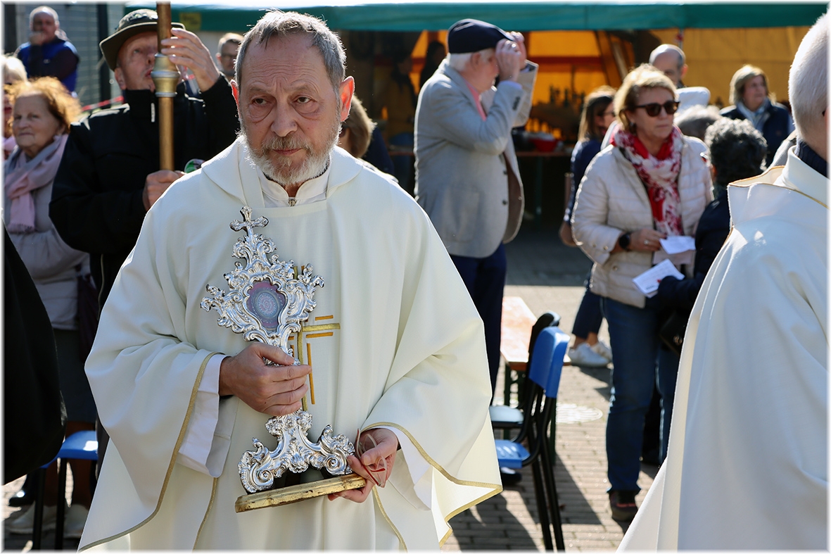 Rientrati nella piazza della chiesa, il parroco don Alessandro ha benedetto i presenti con la reliquia e successivamente è stato servito un aperitivo, seguito dal pranzo condiviso.