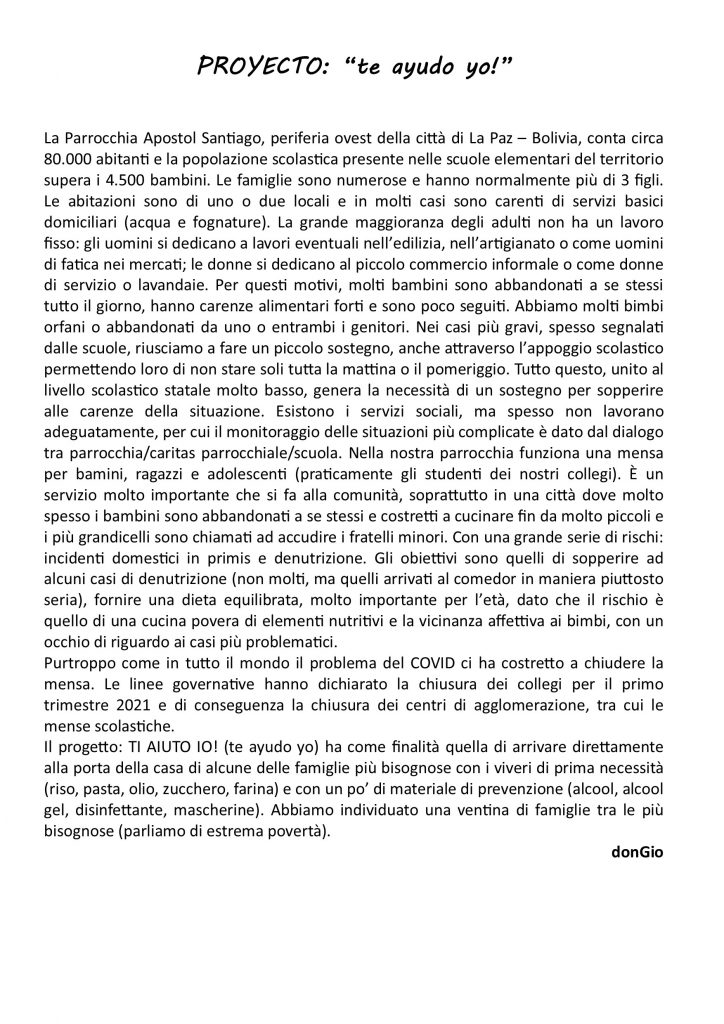 Quaresima 2021 – Progetto Bolivia