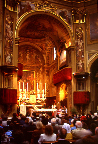 Per questo le nostre chiese da allora hanno altari capaci di ospitare le “macchine” per l’esposizione del Santissimo; per questo la presenza del Santissimo è segnalata dalla luce rossa posta nel presbiterio; per questo sopra i tabernacoli nascevano spesso strutture a forma di tempio, per fare da degna cornice all’ostensorio, e dal soffitto si potevano far scendere grandi teli che, come sipari, aumentassero la scenografia necessaria a far comprendere l’importanza dell’Eucarestia.