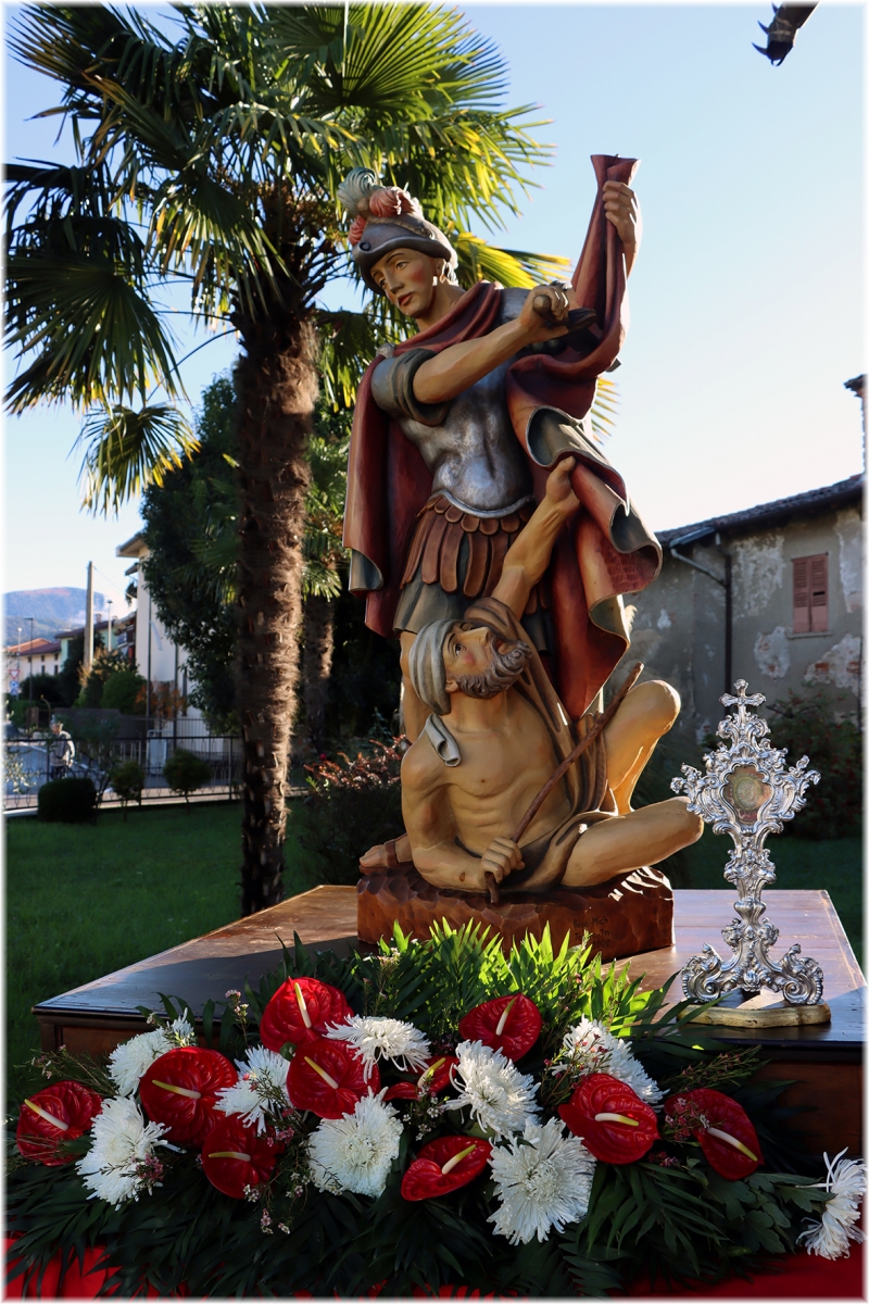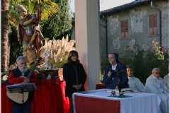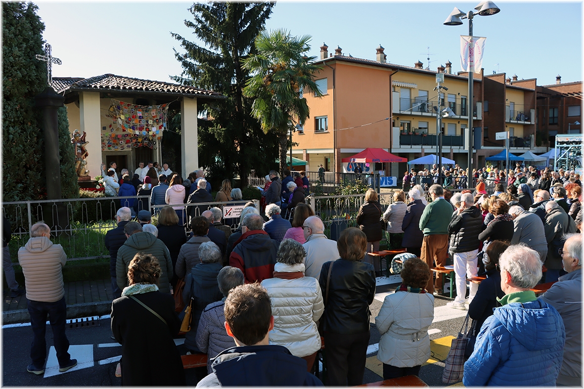 Al termine la processione in alcune vie circostanti con la statua di San Martino, accompagnata dagli Alpini, con il sottofondo musicale proposto dal Gruppo Campanari “Città di Bergamo”, alternando musica e preghiera. Ritornati nei pressi della chiesa, don Davide ha benedetto con la reliquia tutte le persone presenti. Poi, il parroco don Alessandro ha voluto ringraziare don Davide per la sua presenza a questo importante appuntamento per la nostra e sua comunità, donandogli un libro, come segno di vicinanza e amicizia. La mattinata si è conclusa con la condivisione di un aperitivo e la possibilità di passeggiare tra le “bancarelle della solidarietà” dei molti gruppi e associazioni di volontariato presenti sul nostro territorio, proponendo la vendita del tradizionale dolce di San Martino, del foiolo, libri e di tanti oggetti realizzati, per contribuire alla buona riuscita del progetto “Solidarietà al quadrato”.