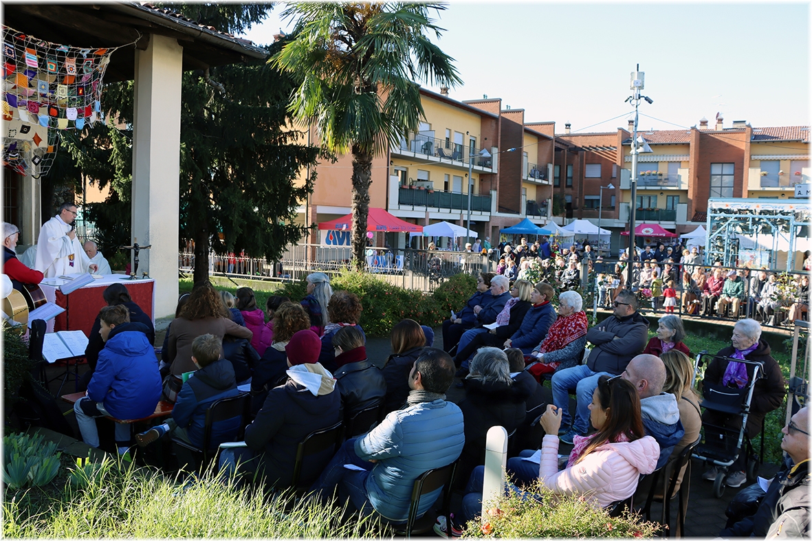 Come da tradizione, la domenica che precede la ricorrenza del nostro Patrono, la comunità si ritrova presso la chiesa di San Martino Vecchio per una giornata di festa. Molti i fedeli che sono giunti nei pressi della chiesa, con la statua di San Martino collocata all’esterno, con esposti alcuni dei quadrati di lana utilizzati per la composizione delle coperte realizzate per il progetto di quest’anno intitolato “Solidarietà al quadrato”. Alle ore 10,00 è stata celebrata la Santa Messa presieduta da don Davide Rota Conti, originario di questa zona, concelebrata da tutti i nostri sacerdoti e dal diacono Bruno, animata dal coro dei ragazzi e dal suono delle chitarre.
