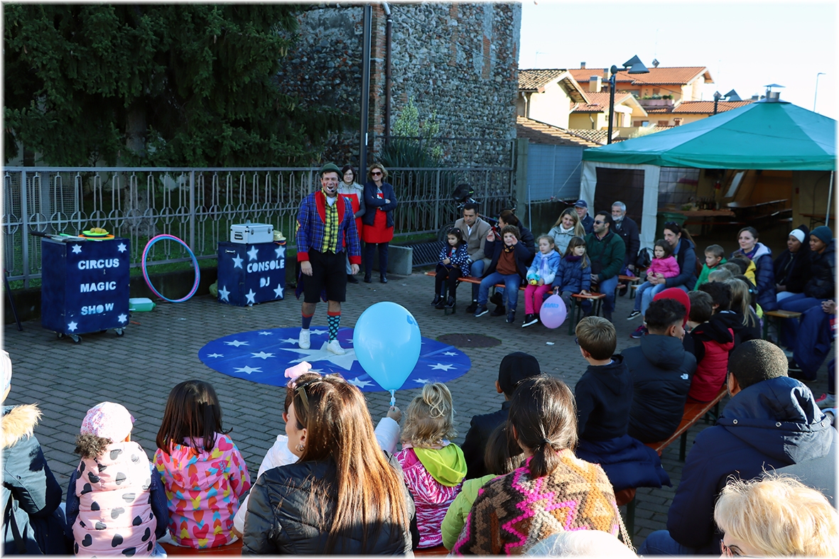 Nel pomeriggio la festa è continuata sulla piazza e per la gioia dei molti bambini, alle 15,00 è iniziato lo spettacolo del giocoliere/clown che tra giochi di prestigio, musica, giocoleria e gag ha intrattenuto e coinvolto i numerosi bambini e le loro famiglie, che hanno trascorso un simpatico, piacevole e per più piccoli entusiasmante pomeriggio. A tutti i presenti, la sezione Avis di Torre Boldone ha donato un piccolo gadget come ricordo di questa giornata, ricordando l’ importanza del “dono” (in questo caso di sangue e plasma) come ci ricorda il nostro patrono San Martino. Un’altra proposta è stata quella di un laboratorio di uncinetto, dove si potevano realizzare, istruiti dalle mani esperte delle volontarie, i quadrati di lana, simili a quelli utilizzati per la composizione delle coperte del progetto “Solidarietà al quadrato”….tradizione, arte e fantasia tramandata nel tempo….Un grazie immenso a tutti i volontari, ai gruppi e alle associazioni che hanno dedicato tempo, impegno e inventiva per l’ ottima riuscita della festa a San Martino Vecchio, che ci introduce nella prossima settimana ricca di appuntamenti.