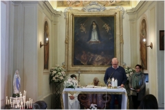Successivamente abbiamo percorso alcune vie di questa zona del paese, recitando il santo rosario, portando il nuovo stendardo ed illuminando il cammino con i tradizionali lumini, che con i loro paraventi colorati creano sempre un’ atmosfera suggestiva.