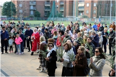 Dopo la preghiera e la lettura di un brano di Vangelo, i sacerdoti e i fedeli presenti hanno raggiunto in processione la chiesa parrocchiale, dove è iniziata la Santa Messa. Questa celebrazione, che ci introduce nel cammino della settimana Santa, è stata molto partecipata, soprattutto dalle famiglie con i bambini che hanno potuto ascoltare il brano di Vangelo della Passione, come da tradizione ben proclamato a tre voci. Al termine, la benedizione su tutta la Comunità, mentre sul sagrato sono stati distribuiti i rametti di ulivo da portare nelle proprie case. Nel pomeriggio, ci siamo ritrovati presso il cimitero per un breve momento di  preghiera e riflessione, accompagnati da don Alessandro e don Tarcisio. Infine, dopo la benedizione, tutti i fedeli presenti hanno deposto sulle tombe dei propri cari un rametto di ulivo, un piccolo gesto, semplice ma molto significativo.