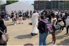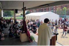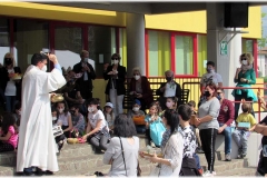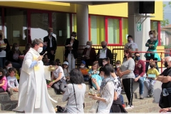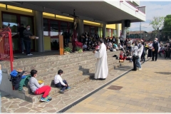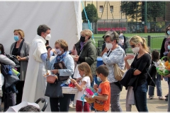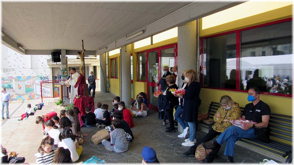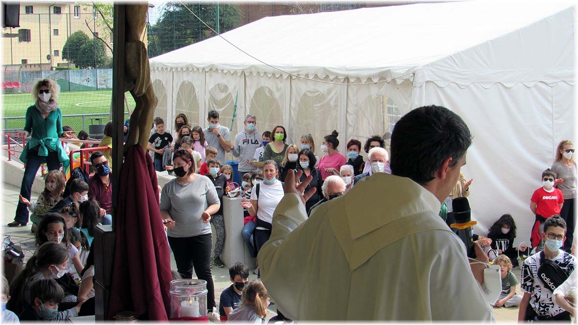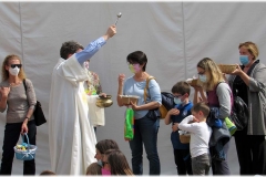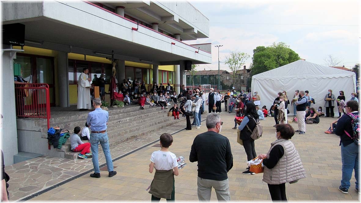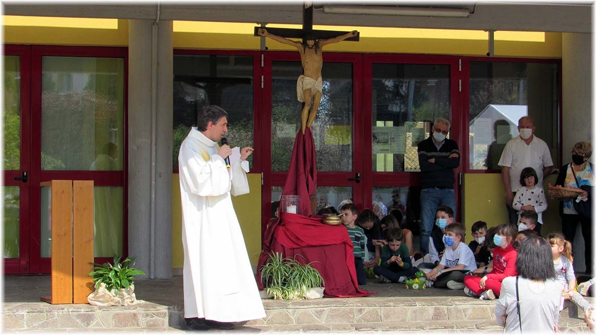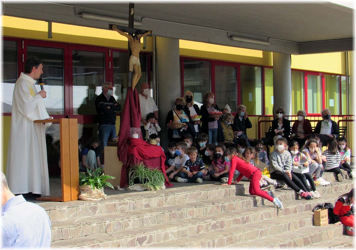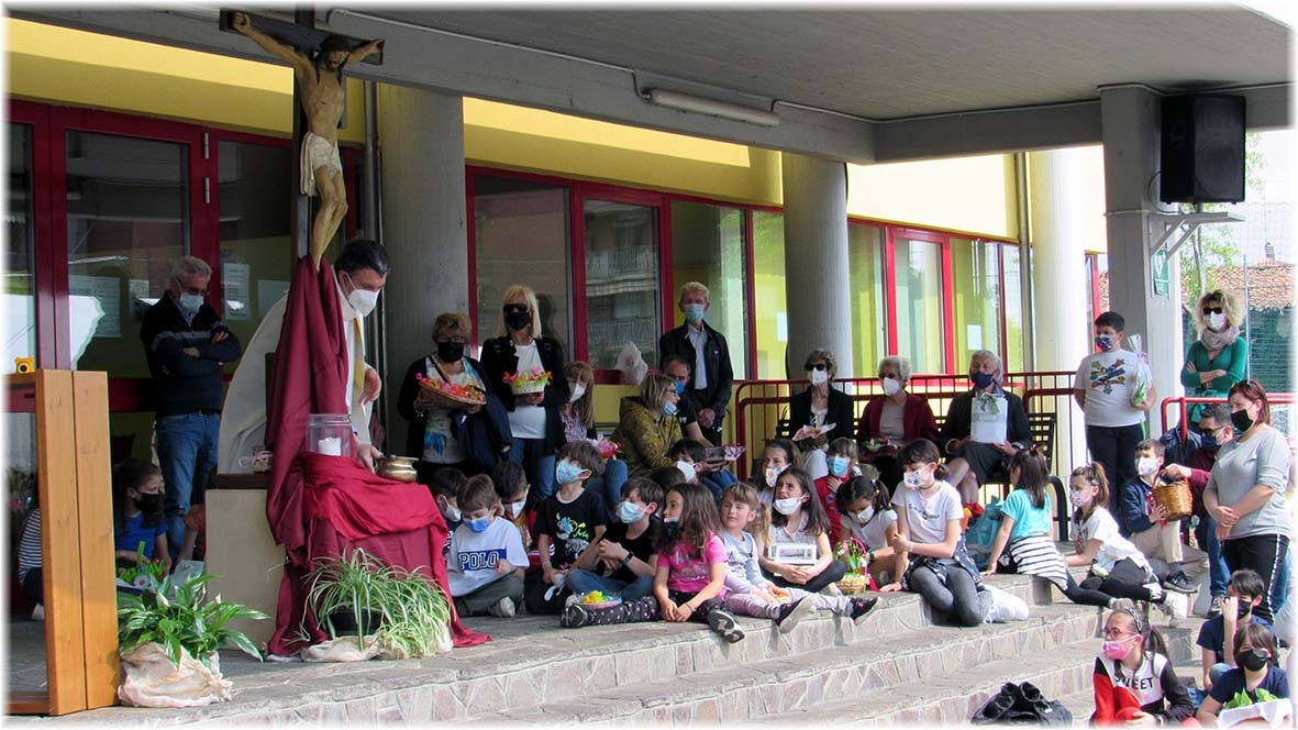 Dopo 2 anni, si è ritornati in presenza alla tradizionale benedizione delle uova, sabato scorso, che con la giornata luminosa e il clima gradevole si è potuta svolgere nel cortile dell’ oratorio.