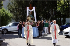 Accompagnati da un gruppo di ragazzi e adolescenti, con la statua dell’ Addolorata, in processione abbiamo percorso alcune vie del paese, meditando i sette dolori, e ascoltando il suono delle nostre campane; raggiunto l’ oratorio, il parroco don Alessandro ha benedetto con la reliquia i tanti fedeli presenti.