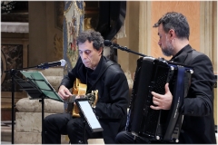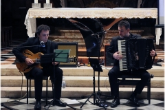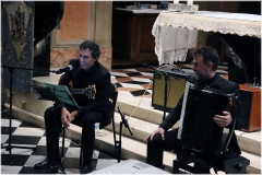 I musicisti Sandro di Pisa alla chitarra e voce narrante, Nadio Marenco alla fisarmonica e Roberto Olzer all’organo, hanno intrattenuto la moltissima gente presente nella chiesa, proponendo i brani del musical, raccogliendo applausi e apprezzamenti dopo tutte le esecuzioni.